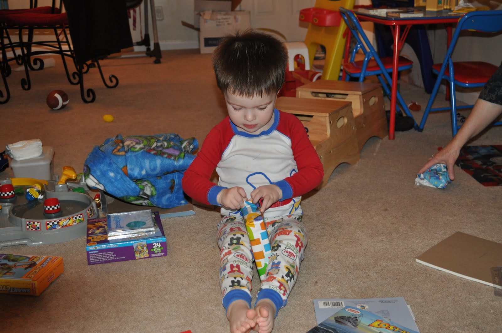 Jake back at the train table...